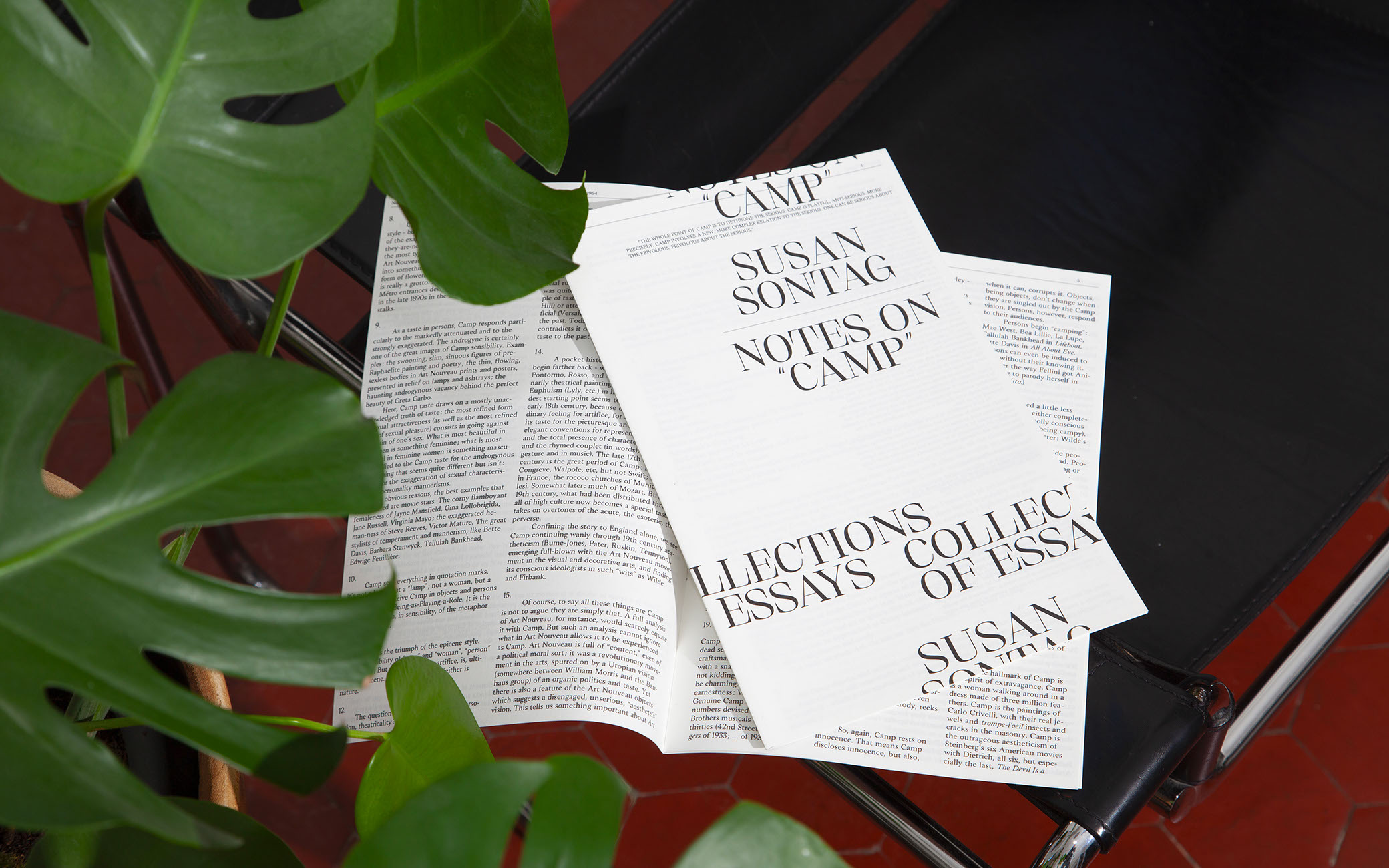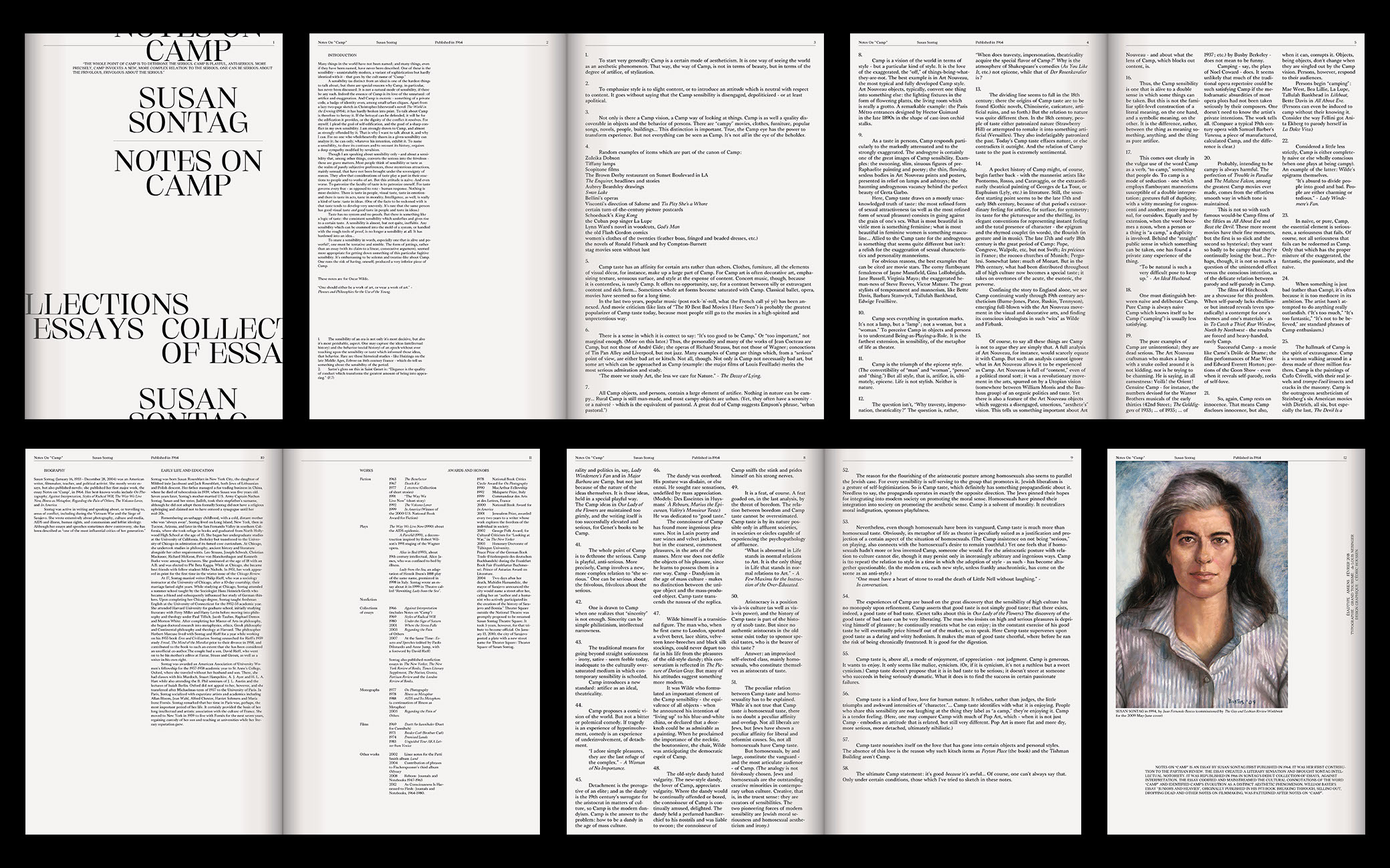 Editorial made by Cedric Houssen on NOTES ON CAMP of Susan Sontag composed with Grand Tourisme